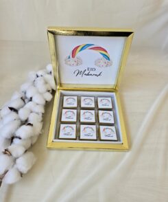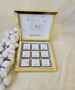 Feiern Sie das besondere Fest des Bayram mit unserer exquisiten, personalisierten Schokobox! Diese elegante Gold Box ist nicht nur ein Fest für die Augen, sondern auch ein Genuss für den Gaumen.