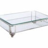 Rechteckige Glasbox mit sanft abgerundeten Kanten, goldfarbenem Rahmen und edlem Spiegelboden. Der Deckel ist mit einer feinen Kette gesichert und bleibt geöffnet stabil stehen – ideal für Schmuck, Deko oder Erinnerungsstücke.
