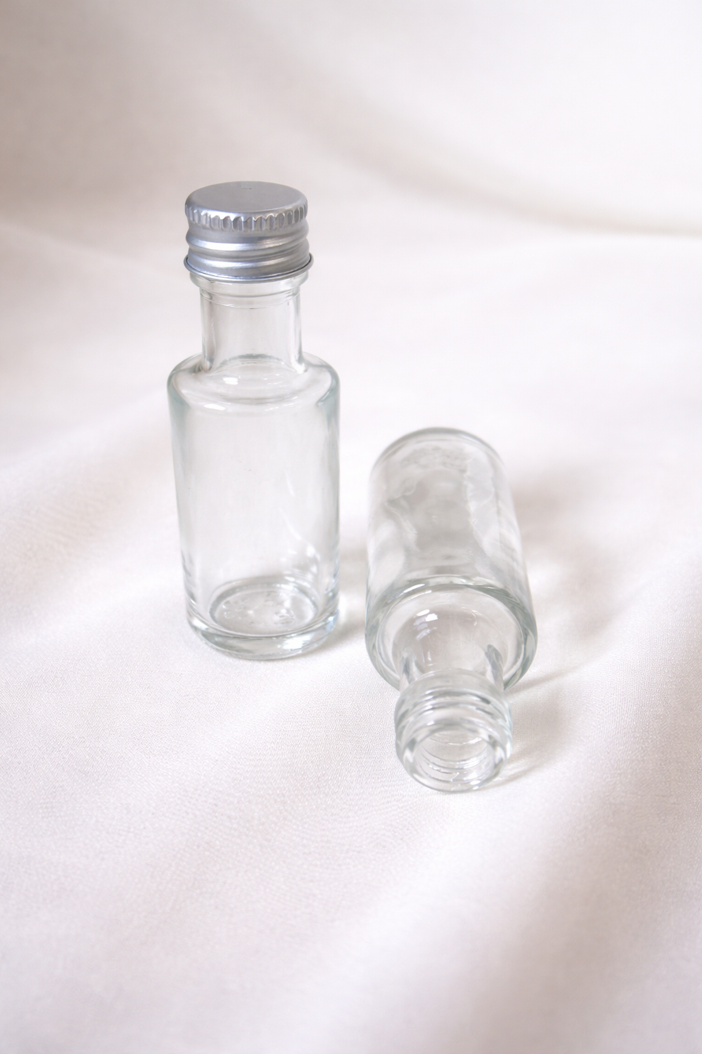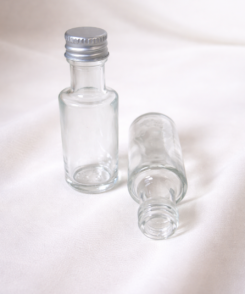 Mini-Glasflasche 20 ml – klar – PP18 Schraubmündung mit Deckel