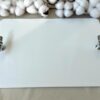 Dieses edle Verlobungstablett in der Größe 30x 20 x 1 cm ist der ideale Begleiter für einen unvergesslichen Heiratsantrag. Die schlichte, glänzend weiße Oberfläche steht für Reinheit und Eleganz – genau wie der Moment, in dem zwei Menschen „Ja“ zueinander sagen. Zwei hochwertige Halterungen aus Edelstahl setzen stilvolle Akzente und sorgen gleichzeitig für sicheren Halt.